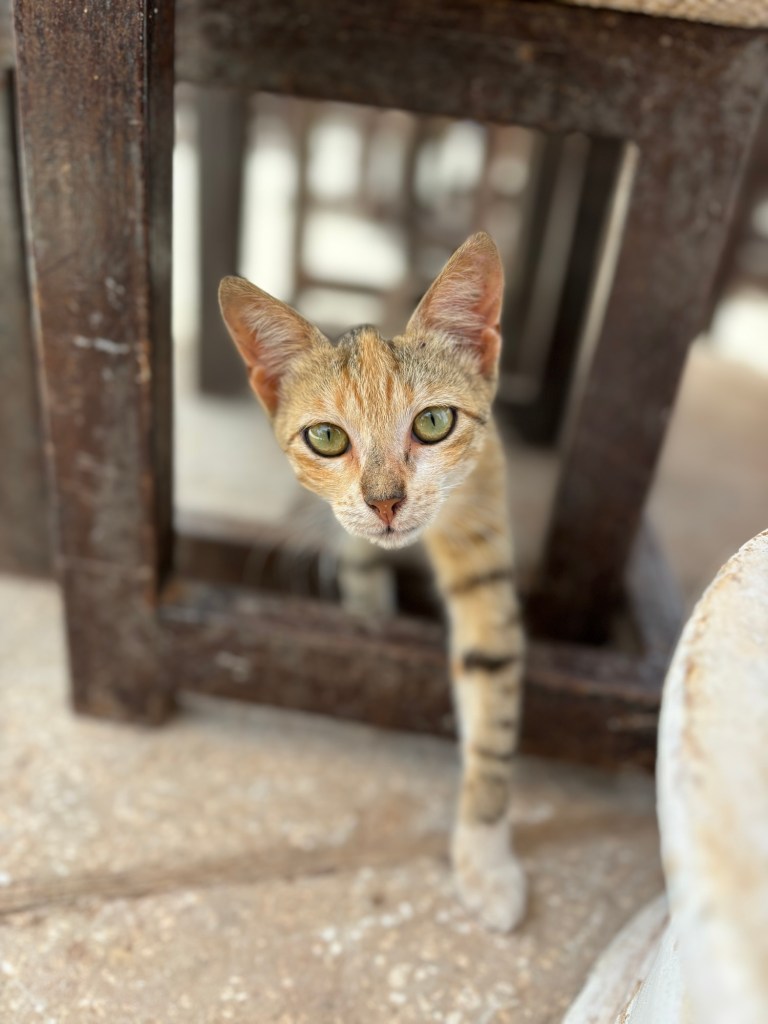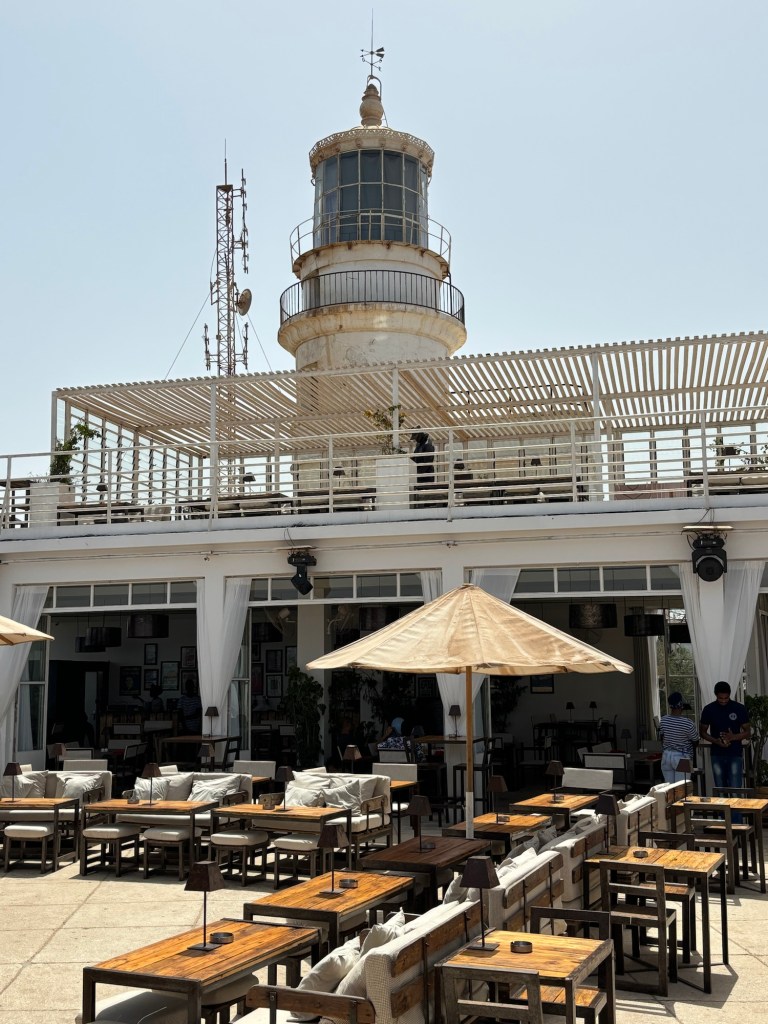 Vers 11h, nous rejoignons à pied le Phare des Mamelles pour se poser à l’ombre des parasols car le mercure affiche 38 degrés. Construit en 1864 sur la plus haute colline des mamelles, il est considéré comme l’un des plus puissants d’Afrique avec celui du Cap de Bonne Espérance. Point culminant de la Capitale sénégalaise, il offre un splendide panorama jusqu’à la presqu’île du Cap-Vert et abrite aujourd’hui un lieu de réception moderne ou nous prendrons une formule brunch en compagnie de petits chatons venu mendier quelques miettes.