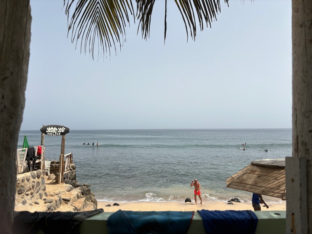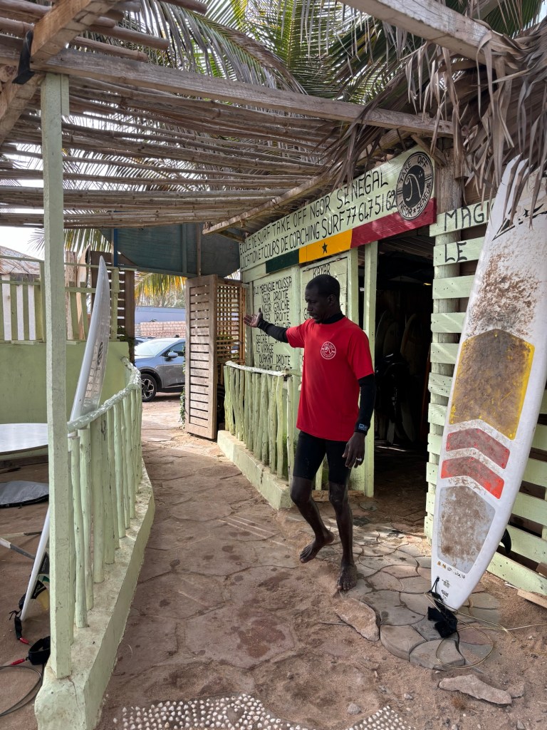 Le ventre bien garni nous rejoignons ensuite les Almadies pour un cours de surf privé en compagnie de Papé au Take off Ngor. Si vous voulez louer des planches, prendre un cours ou tout simplement vous mettre à l’eau en compagnie de quelques uns des meilleurs surfeurs du Sénégal c’est ici que vous devez vous rendre! Ambiance à la cool, petites vagues sympa, partage et sourires, on a vraiment passé un super moment au Secret! Allez y sans hésiter de ma part! 😎👙💦