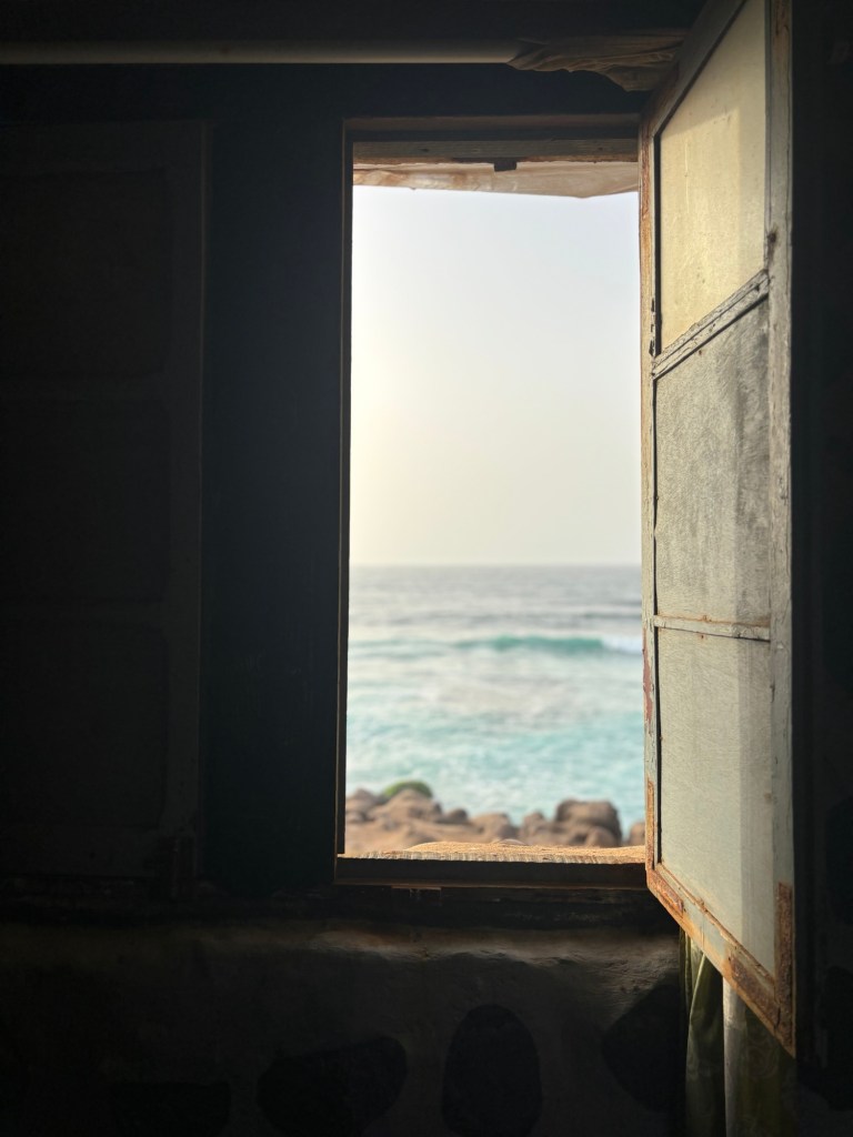 Exténuées après nos 2h de surf, nous allons vers l’embarcadère pour rejoindre la petite île de Ngor en pirogue. Nous passerons la nuit chez Maam & Daouda un couple franco sénégalais d’artistes qui propose des chambres vue sur mer à un tarif défiant toute concurrence. Ce lieu atypique est plutôt réservé aux personnes un peu « roots » et pour qui le “matériel” n’a pas d’importance. Tout est fait à partir de récup. La chambre est composée d’un simple matelas et une moustiquaire avec une vue imprenable sur la mer. C’est propre, c’est simple et ça fait des souvenirs !