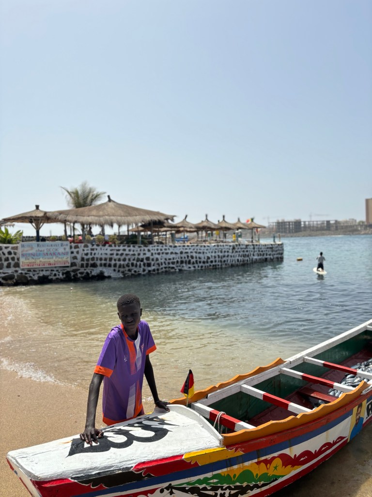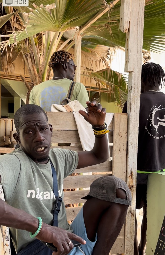 Après avoir déposé notre sac à dos chez nos hôtes, nous filons rejoindre notre ami Yoro qui nous accompagnera jusqu’à un restaurant de plage pour déguster un repas maison aux saveurs épicées.