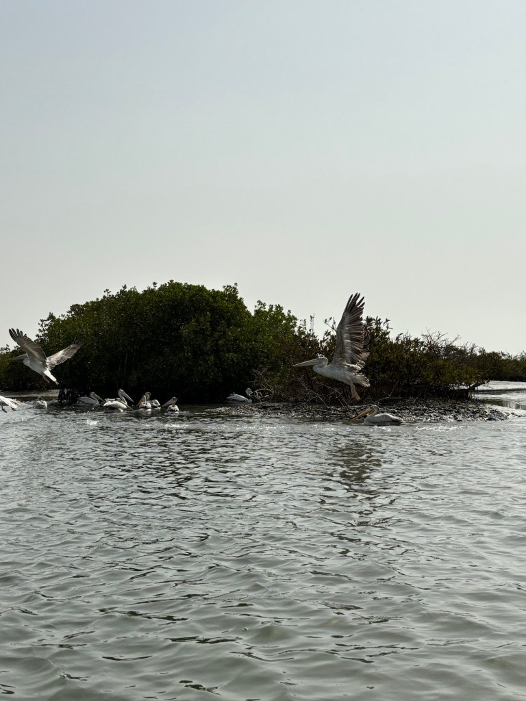 Nous optons pour une balade en pirogue d’une demie journée pour découvrir les mangroves. Alors que nous avançons lentement sur les eaux claires du fleuve, nous tombons rapidement nez à nez avec un groupe de pélican gris. Cet animal majestueux a pris ses habitudes comme de nombreux migrateurs et autre oiseaux erratiques au cœur de la mangrove. Un peu plus loin nous aurons la chance d’observer des aigles pêcheurs, des aigrettes, 4 espèces de hérons mais aussi un fou de bassan et quelques cormorans. De quoi ravir les adeptes d’ornithologie.